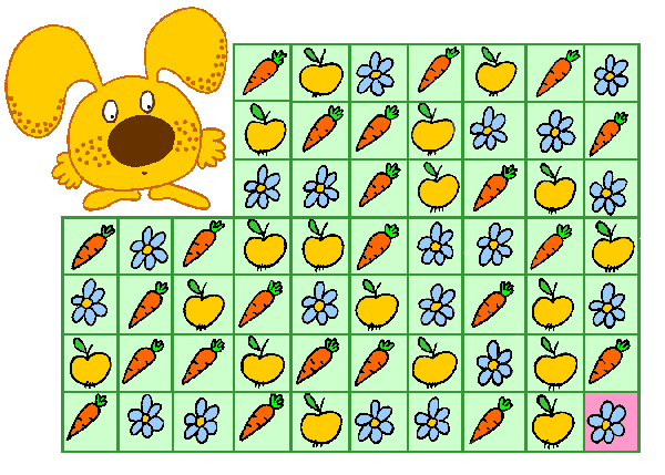 ПОМОГИТЕ ЗАЙЦУ ДОБРАТЬСЯ ДО ЦВЕТОЧКА В РОЗОВОЙ КЛЕТОЧКЕ.